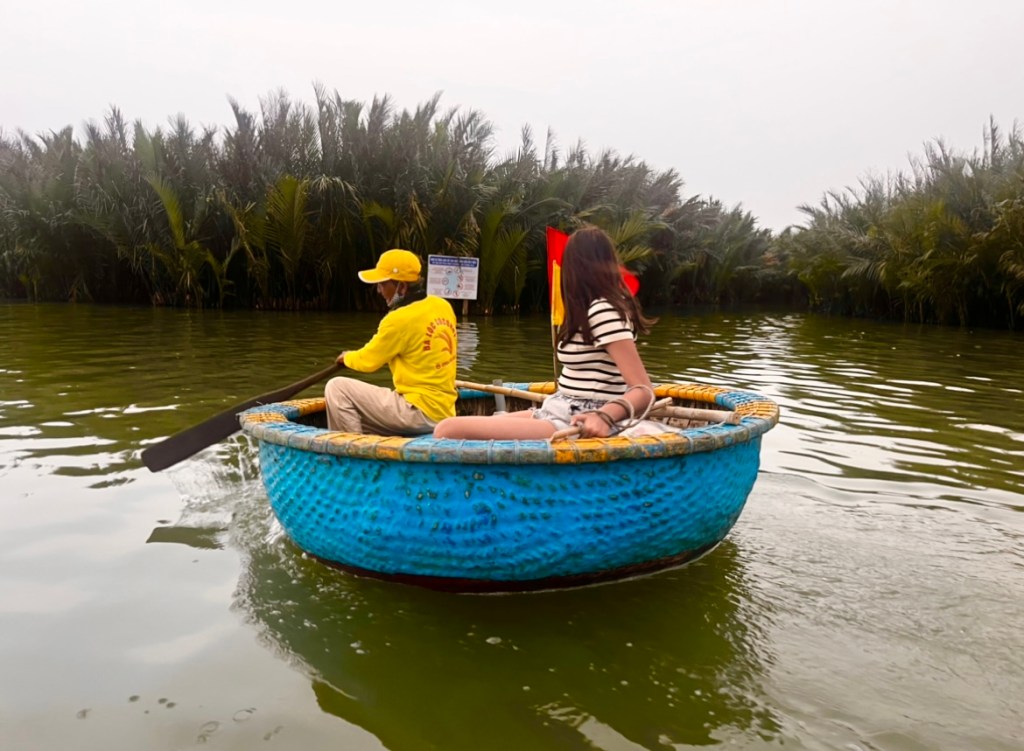 Bamboo Boat Thrills and Magical Stunts : Upon arrival, we couldn’t resist exploring the popularized basket boat rides. Our cab driver from Da Nang airport took us to Ba Loc Coconut, one of the spots in Hoi An offering this exhilarating boat ride. We paid a hefty sum for two boats, and quickly got into the circular bamboo boats, sailing through the coconut grove towards the center as the sun dipped below the horizon. Just when we were halfway through our ride, the boat pilot treated us to a thrilling stunt, spinning the boat around to our delight. Though enjoyable, I found it a bit overhyped. Nevertheless, it was a memorable start to our Hoi An journey.