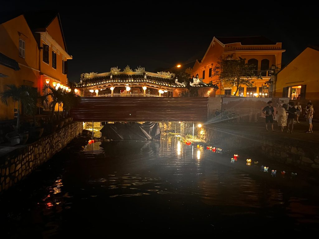 Ancient Town Wonders and An Bang Beach Bliss : The next morning, we immersed ourselves in the ancient town’s beauty. The town’s historical significance and stunning architecture left us in awe. We explored the iconic Japanese covered bridge also known as the Chùa Cầu (Bridge Pagoda) or the Lai Vien Kieu. This bridge was constructed in the 16th century to connect the Japanese settlement on the west side of the town to the Chinese quarter on the east side. Today it stands as a functional crossing and also serves as a symbol of cultural exchange and historical significance between the Japanese and Vietnamese communities. There is also a small temple inside it dedicated to the deity Thien Hau, the goddess of the sea. As we stood on the iconic bridge, we also came to know that this bridge is printed on Vietnam’s 20,000 VND banknote, making it all the more special.
