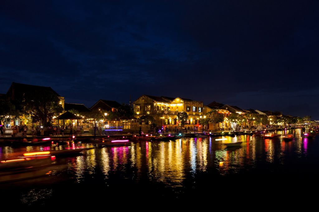 Nights at Hoi An : As the sun set, Hoi An transformed into a magical wonderland. One side of the streets sparkled with the colorful lights of floating lanterns, and boats glided gracefully on the lake’s surface. Hoi An’s night was truly enchanting, offering numerous photo opportunities.